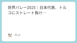 エンタメ 世界バレー2025|日本代表、トルコにストレート負け… 2025年男子バレー世界選手権プールG初戦、日本代表はトルコに0-3で敗戦。高さとサーブに苦しんだ試合を振り返り、課題と収穫、次戦カナダ戦への展望を解説。 2025.09.13 エンタメ